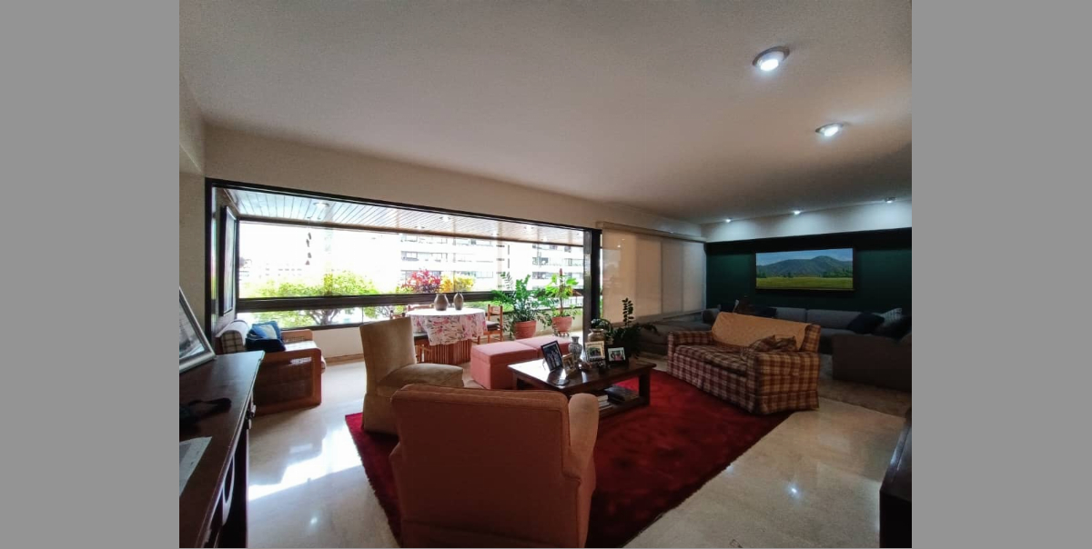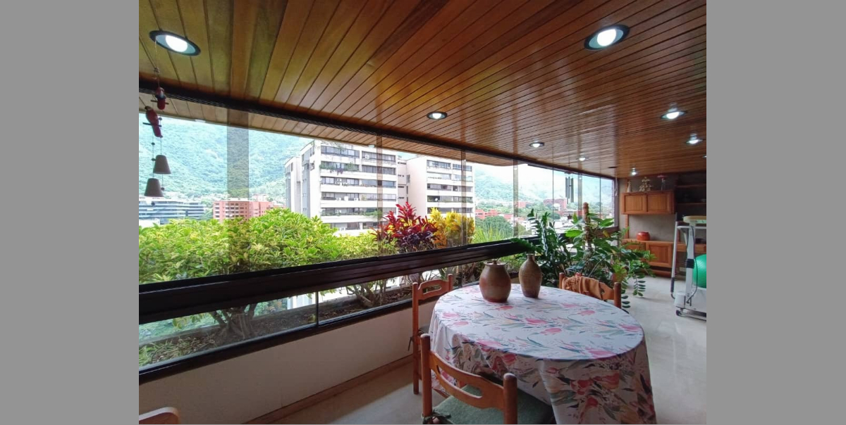 Amplio y acogedor apartamento ubicado en un conjunto Residencial seguro con excelente mantenimiento, cuenta con amplias caminerias llenas de arboles, parrillera, parque infantil, vigilancia privada, cancha de usos m?ltiples, pozo de agua, planta el?ctrica, sal?n de fiesta, maletero. El apartamento con hermosa vista al Avila, buena distribución, iluminado, ventilado, piso de m?rmol en salones y parquet en habitaciones, ascensor privado.