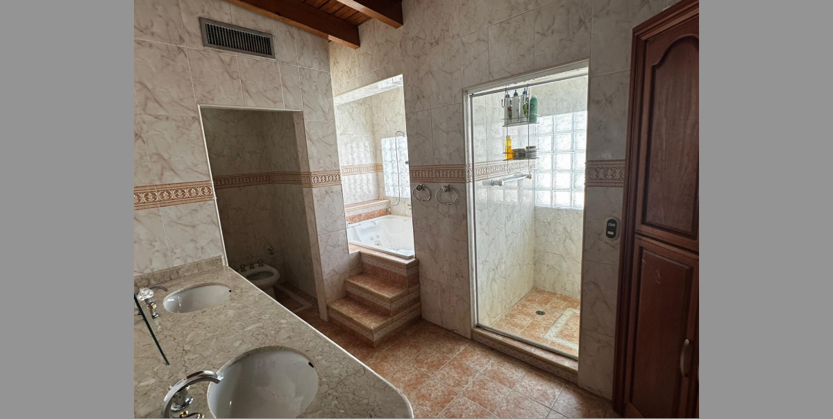 ? 300 m? de construcción | 540 m? de terreno ? 4 habitaciones (principal con vestier y baño con jacuzzi) ? 5 baños ? Área de lavandero y patio interno ? Jard?n y estacionamiento techado para 3 vehículos ? Piscina, Área de parrillera y depósito ? Tanques subterráneos de 12.000 L y 2.000 L ? C?maras de seguridad y cerco eléctrico ? Equipada y amoblada | Aires centrales y tipo split